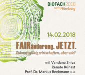 Am vergangenen Mittwoch (14.02.2018) war Professor Beckmann als Diskutant auf der Veranstaltung „FAIRänderung.JETZT! – Zukunftsfähig Wirtschaften, aber wie?“ vertreten. Die Podiumsdiskussion bildete den Auftakt der BIOFACH, der Fachmesse für biologische Produkte in Nürnberg.